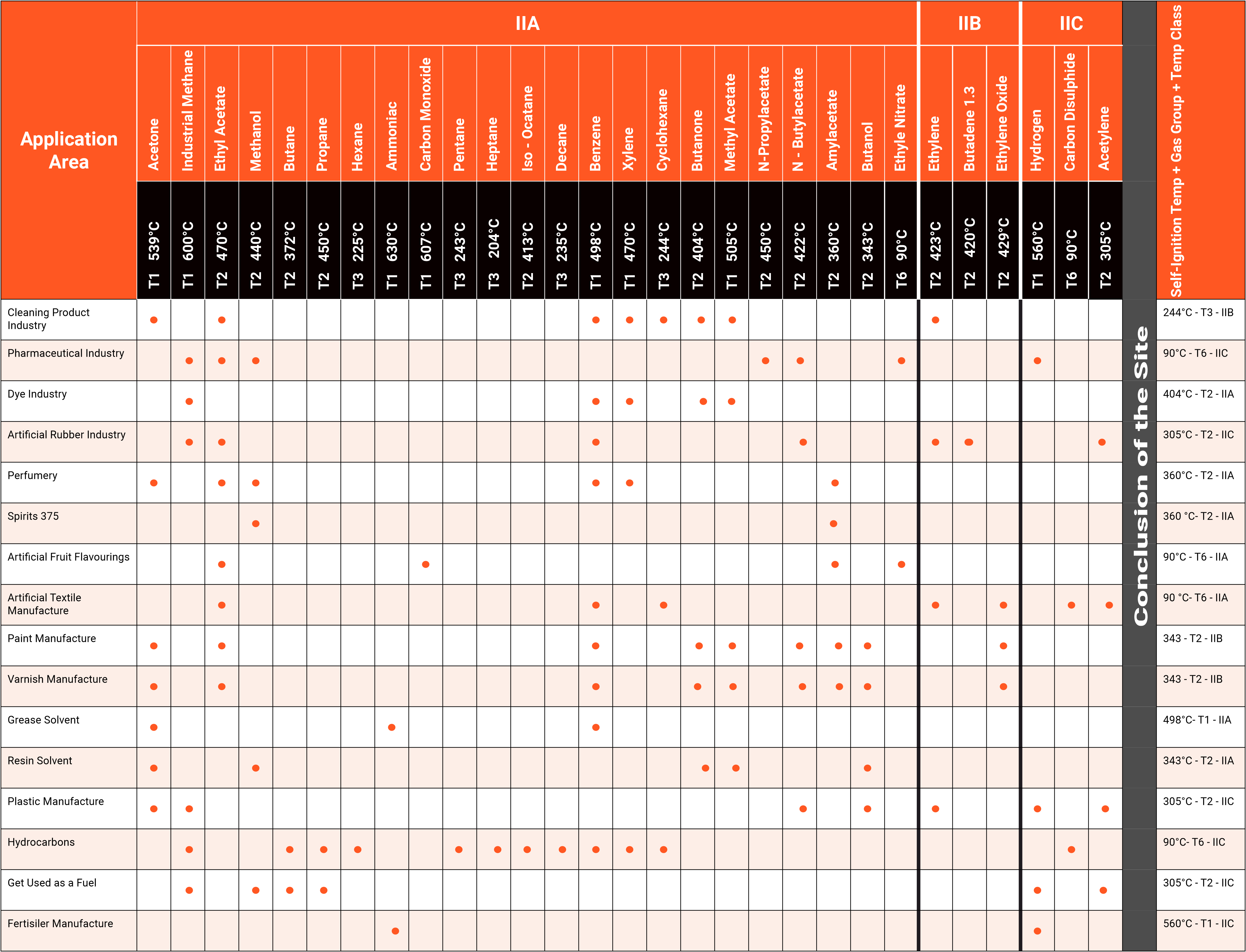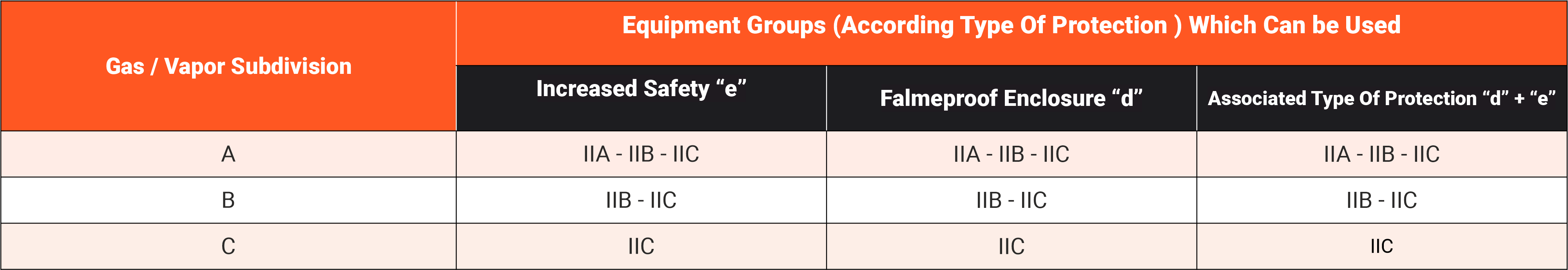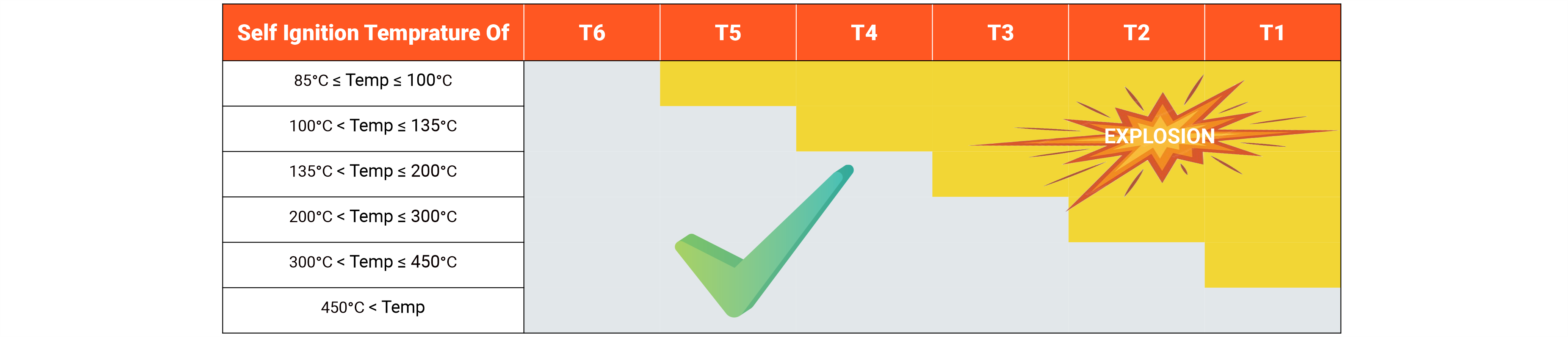 Equipment must never be used in an atmosphere capable of ignition at the temperature indicated on the marking (temperature class).